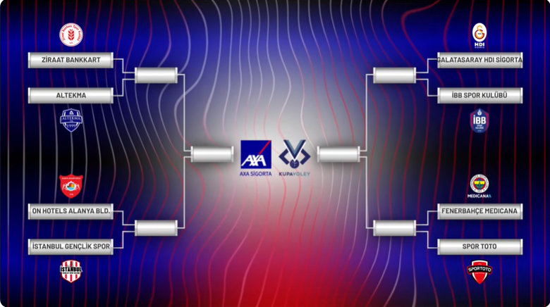 Türkiye Voleybol Federasyonu Başkanı Mehmet Akif Üstündağ ile AXA Sigorta CEO’su Yavuz Ölken’in katılımıyla gerçekleştirilen  kura çekimi, Kadınlar ve Erkekler AXA Sigorta Kupa Voley Final Etabı’nda mücadele edecek takımların eşleşmeleri belirlendi.