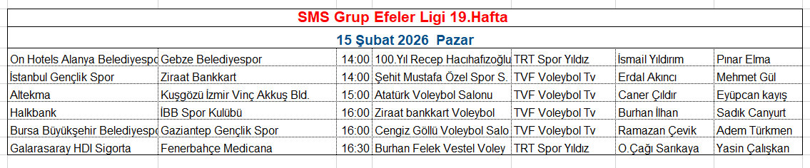 Efeler  Ligi’nde 19. hafta karşılaşmaları 15 Şubat Pazar günü oynanacak. Haftanın maçlarını yönetecek hakemler belli oldu.