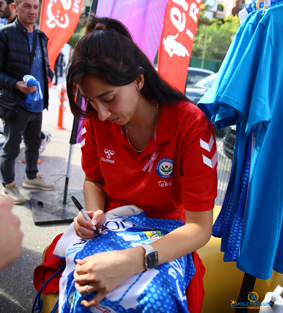 Nilüfer Belediylespor Eker’in kadın voleybol takımı, kanser haftasına dikkat çekmek için Eker’in düzenlediği etkinliğe katıldı ve formalarını imzaladı