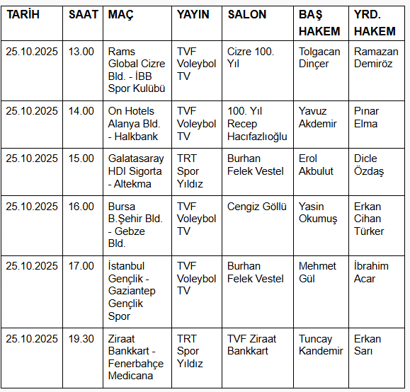 2025-2026 sezonu SMS Grup Efeler Ligi’nin ilk haftasında görev alacak hakemler belli oldu.