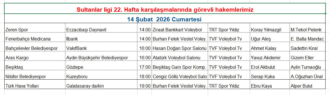 Sultanlar Ligi’nde 21. hafta karşılaşmaları 14 Şubat Cumartesi günü oynanacak. Haftanın maçlarını yönetecek hakemler belli oldu.