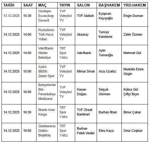 Vodafone Sultanlar Ligi’nde 11.hafta karşılaşmaları ve maçları yönetecek hakemlerimiz.