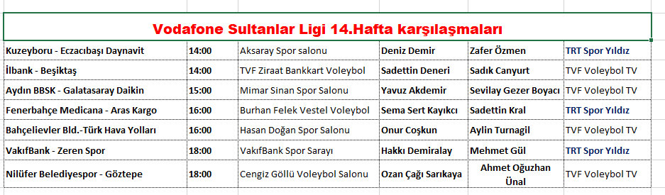 Vodafone Sultanlar Ligi 14.Hafta Karşılaşmalarında görev alan hakemlerimiz