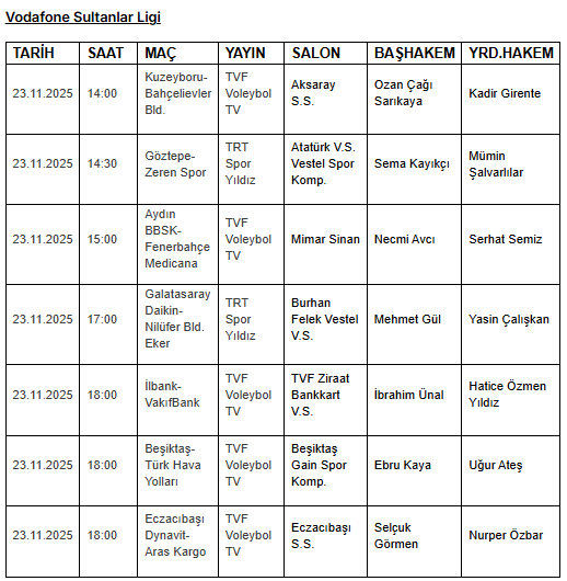 GenelVodafone Sultanlar LigiVoleybol HaberleriVoleybol Hakemleri ve Gözlemcileri