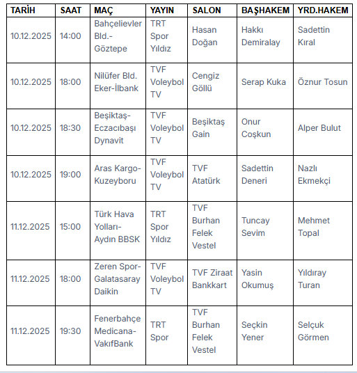Vodafone Sultanlar Ligi’nde 10.hafta müsabakaları, 10-11 Aralık 2025 tarihlerinde oynanacak.